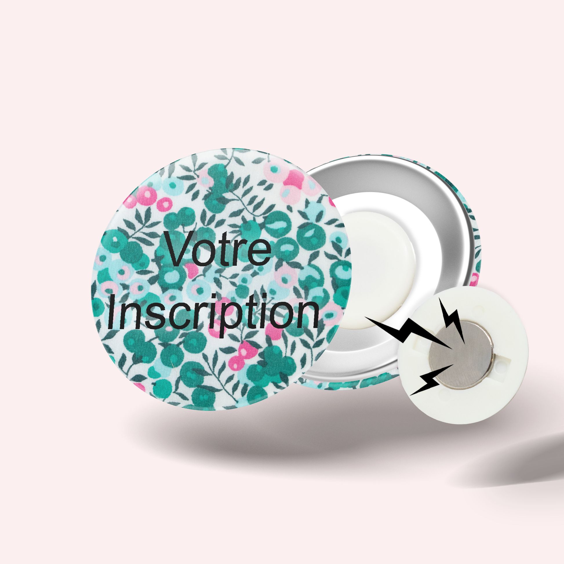 Choose between two options: a classic pin model or a magnetic version that attaches easily without damaging clothing, thanks to a magnet that slips discreetly behind the fabric.