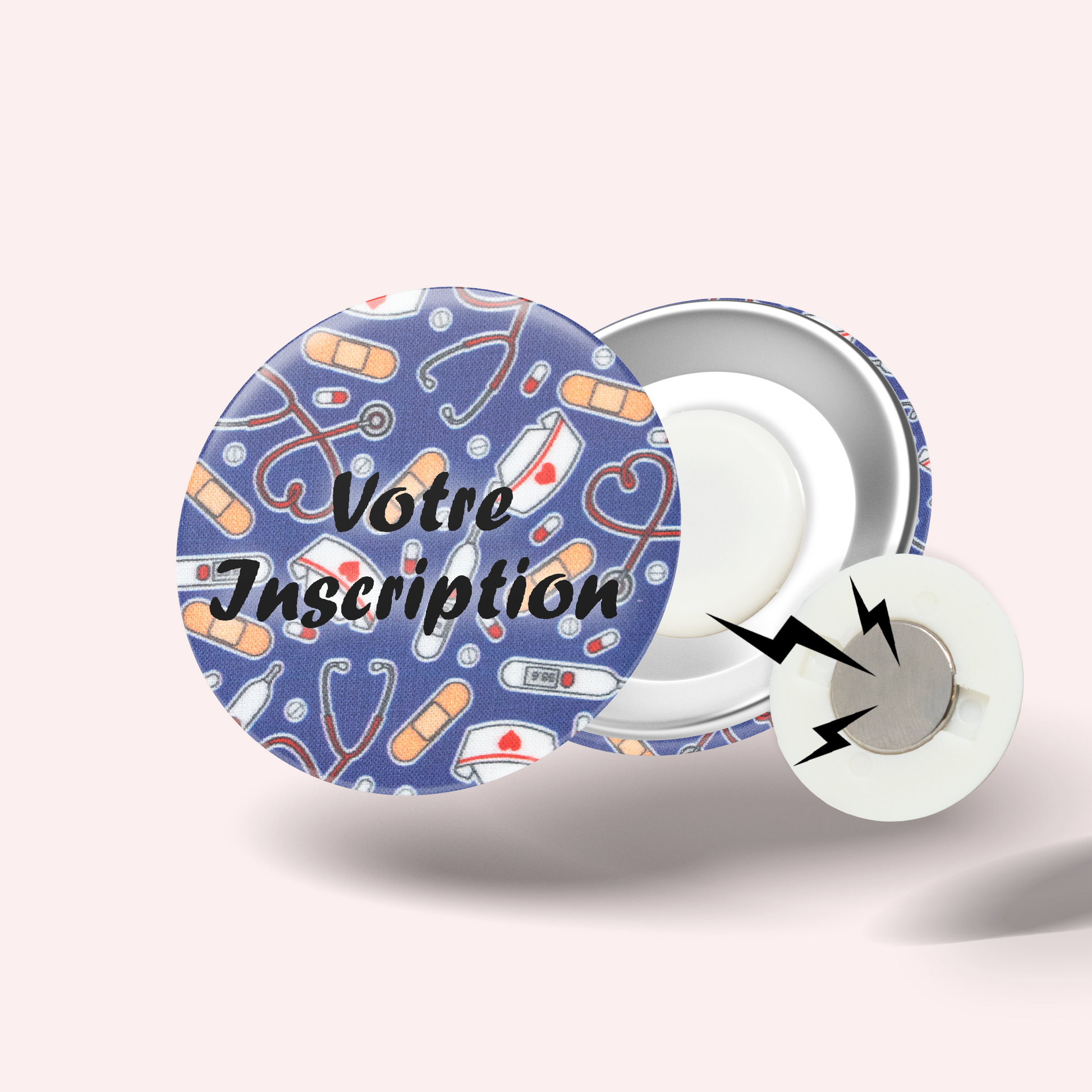 Our 56mm customisable badges are the perfect solution to combine practicality and personalisation. Ideal for nurses, doctors, teachers and other professionals, this badge allows you to add the inscription of your choice: first name, position, humorous quote or any other personalised message. Combining comfort and style, these badges are an essential accessory to display your information with originality and without hassle.
