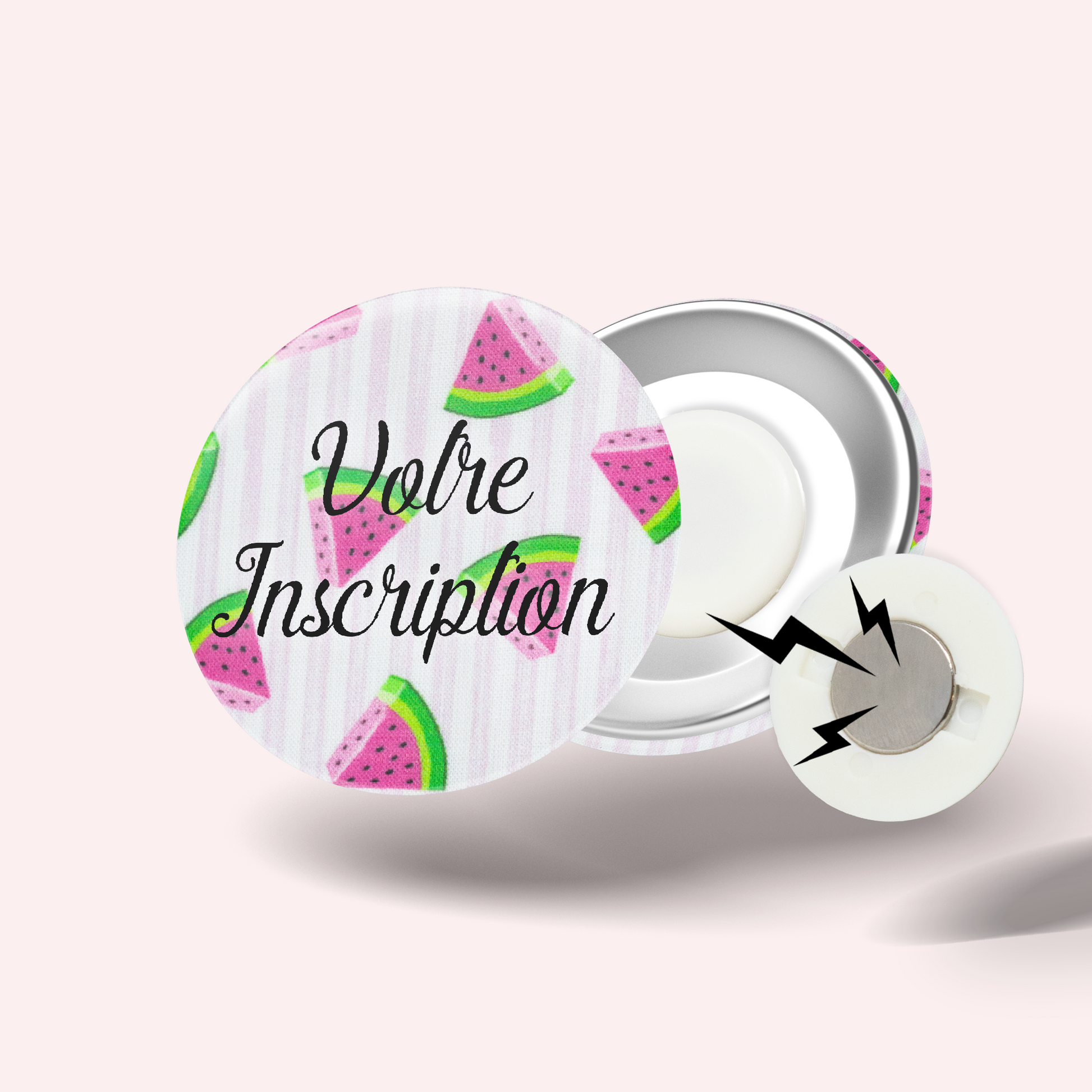 Choose between two options: a classic pin model or a magnetic version that attaches easily without damaging clothing, thanks to a magnet that slips discreetly behind the fabric.