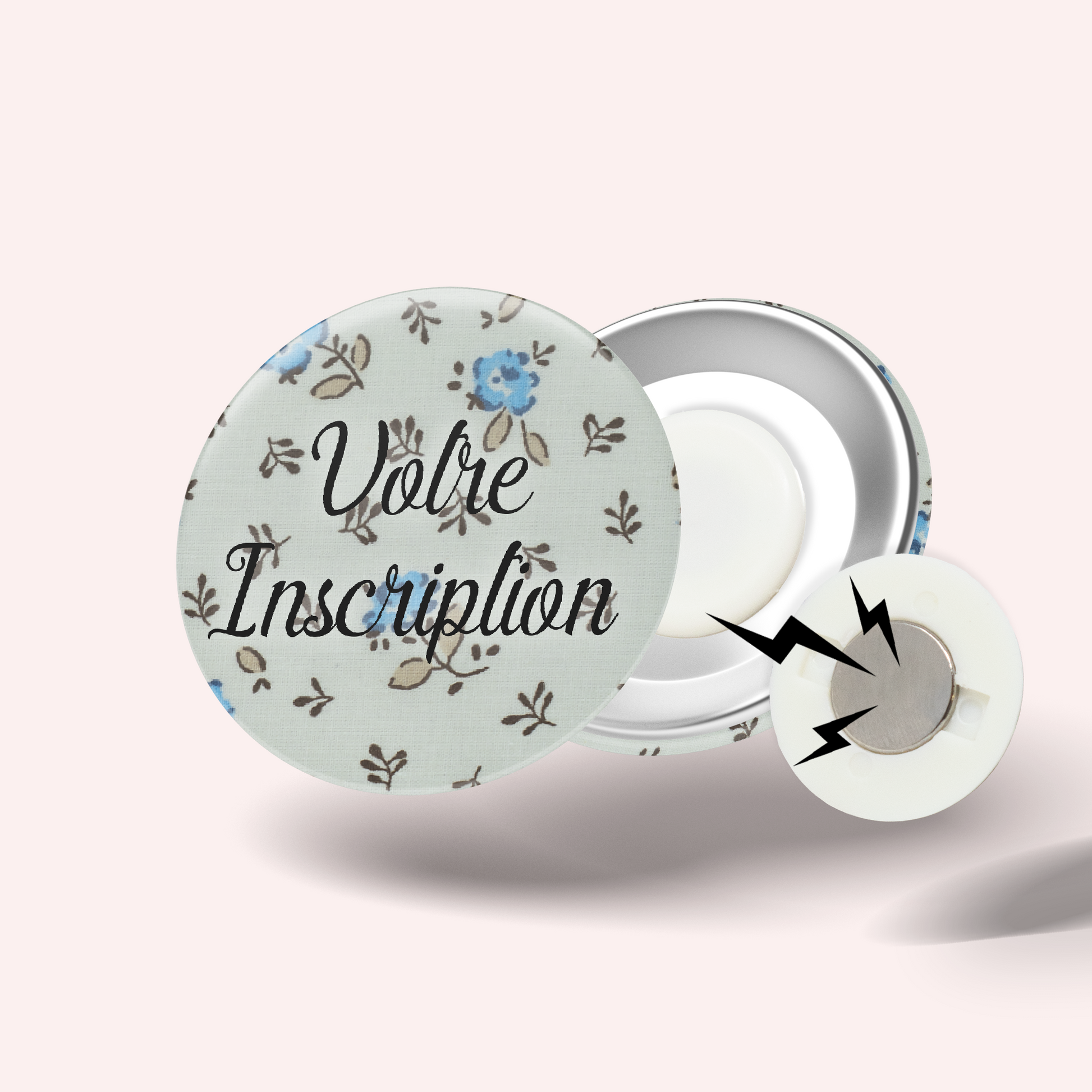 Choisissez entre deux options : un modèle à épingle classique ou une version aimantée qui se fixe facilement sans abîmer les vêtements, grâce à un aimant qui se glisse discrètement derrière le tissu.