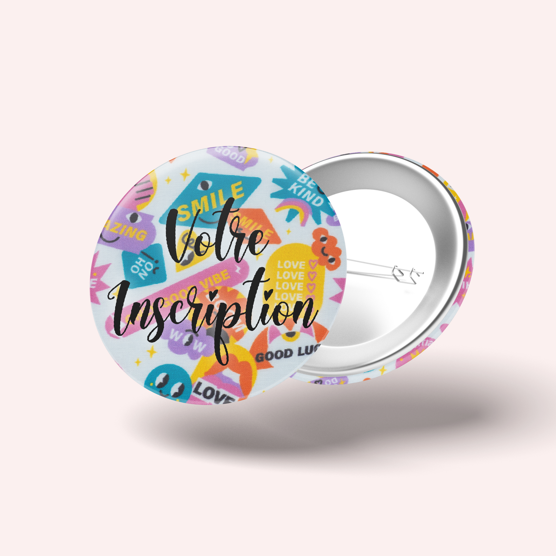 Tous nos badges ne sont pas personnalisables. Si l'encadré rouge avec la mention "Ce badge n'est pas personnalisable" apparaît en haut de cette page, cela signifie que le badge est vendu tel quel.