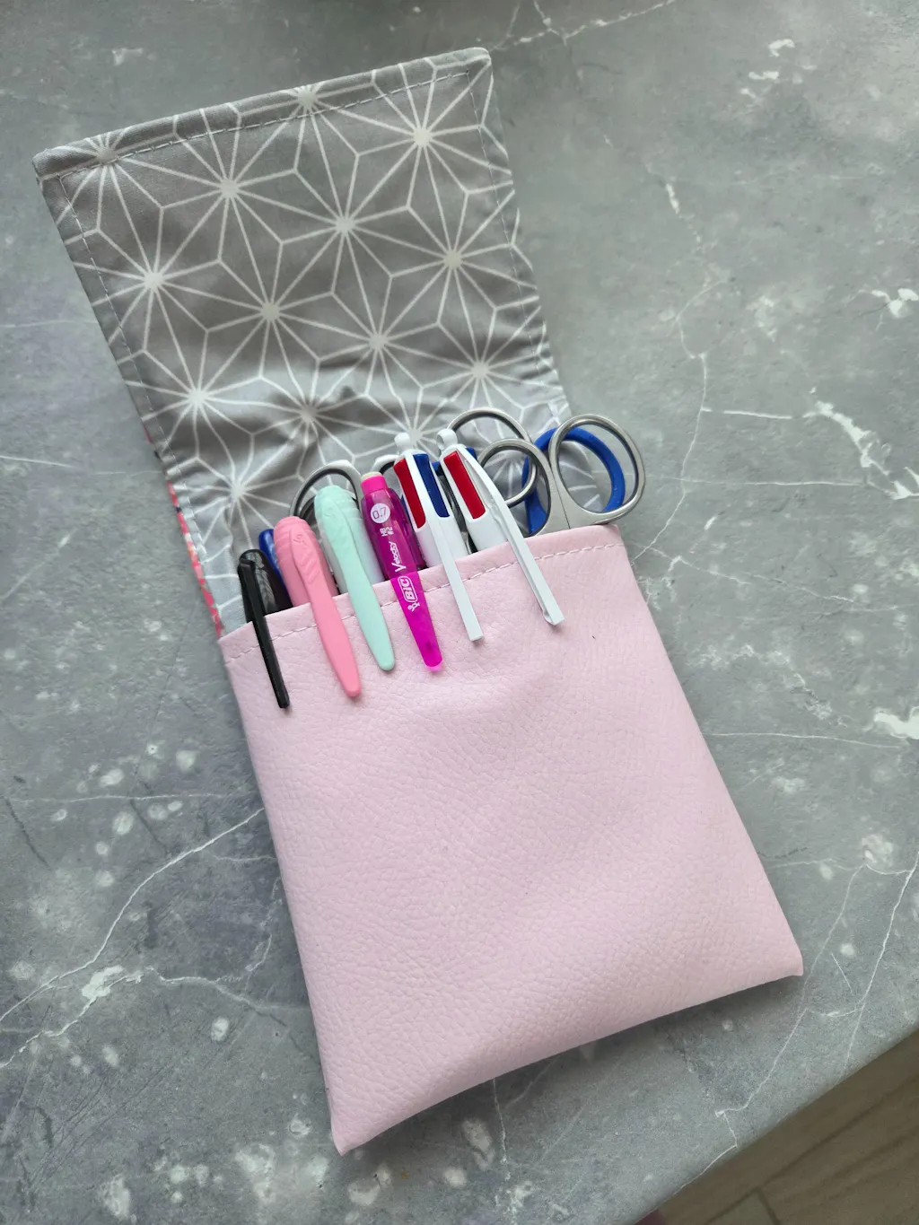 La pochette offre une capacité de stockage intelligente pour vos outils de travail essentiels, y compris crayons, stylos, marqueurs, ciseaux à bout rond, gomme, et + encore.
