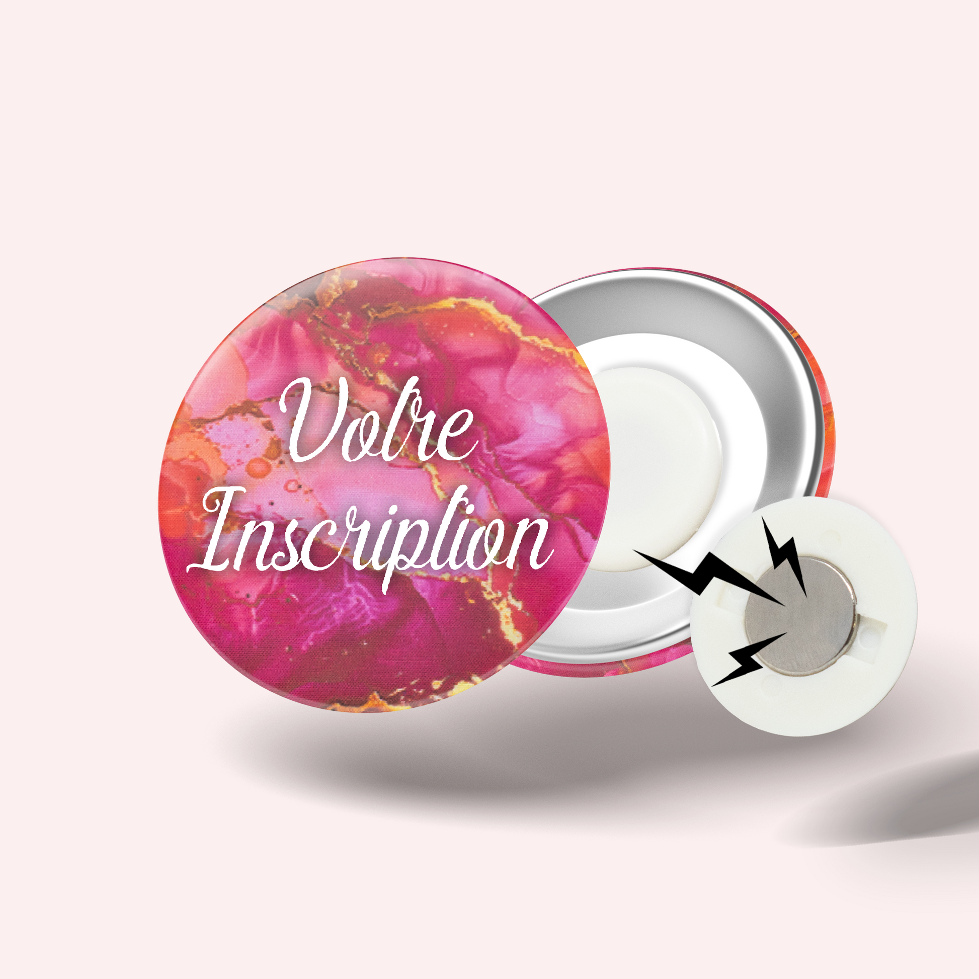 Choisissez entre deux options : un modèle à épingle classique ou une version aimantée qui se fixe facilement sans abîmer les vêtements, grâce à un aimant qui se glisse discrètement derrière le tissu.